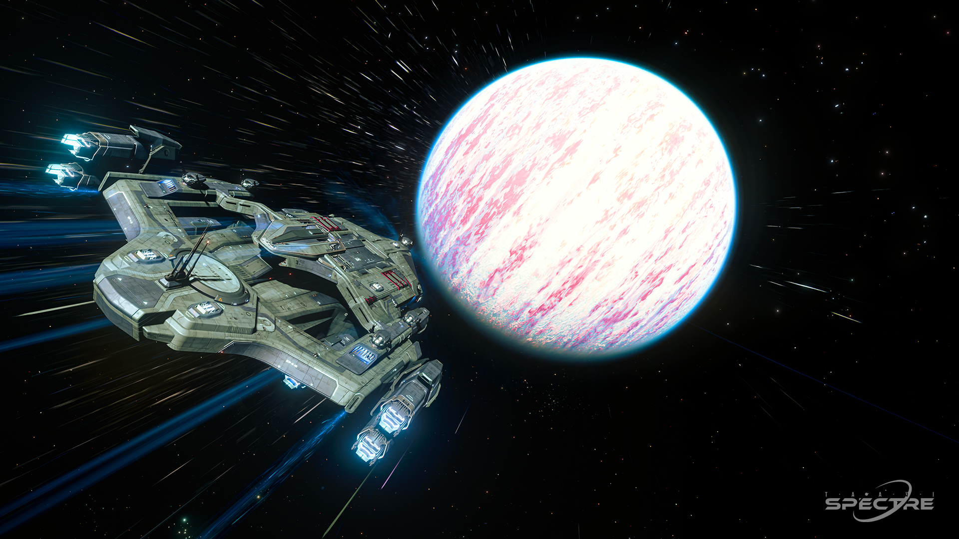 Layered armor and disciplined geometry characterize the Aegis Idris-M, a military capital ship in Star Citizen built for frontline engagement. Its imposing hull stretches across the frame with deliberate symmetry, projecting controlled aggression. In cinematic lighting, the Idris-M’s surface detail and structure reinforce its role as a flagship of organized force.