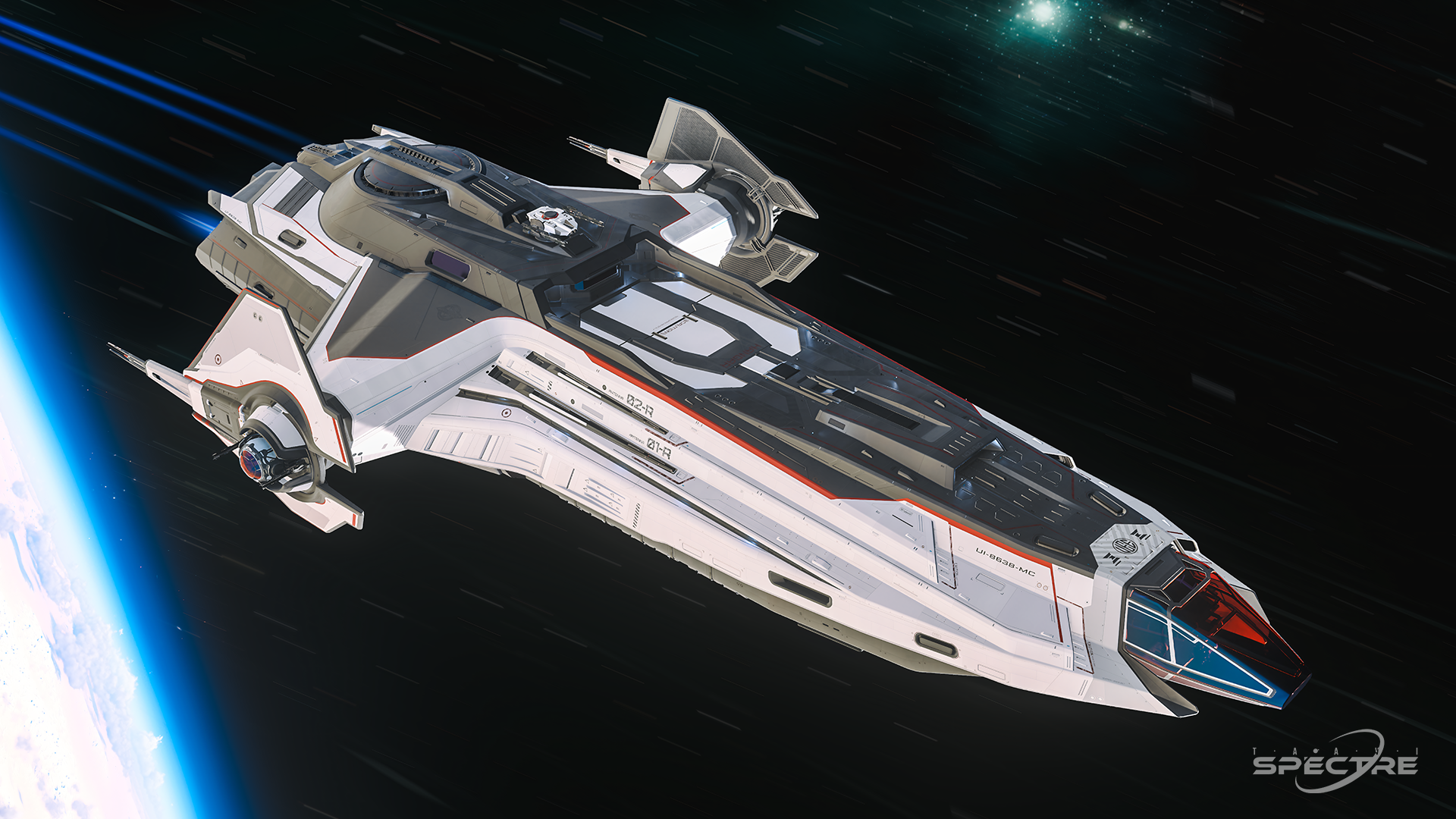 Manufactured by Anvil Aerospace, the Carrack is a large exploration vessel in Star Citizen designed for autonomous deep-space operations. Its elongated hull, reinforced plating, and modular sections establish a commanding silhouette. The ship’s form language emphasizes range, adaptability, and sustained presence.